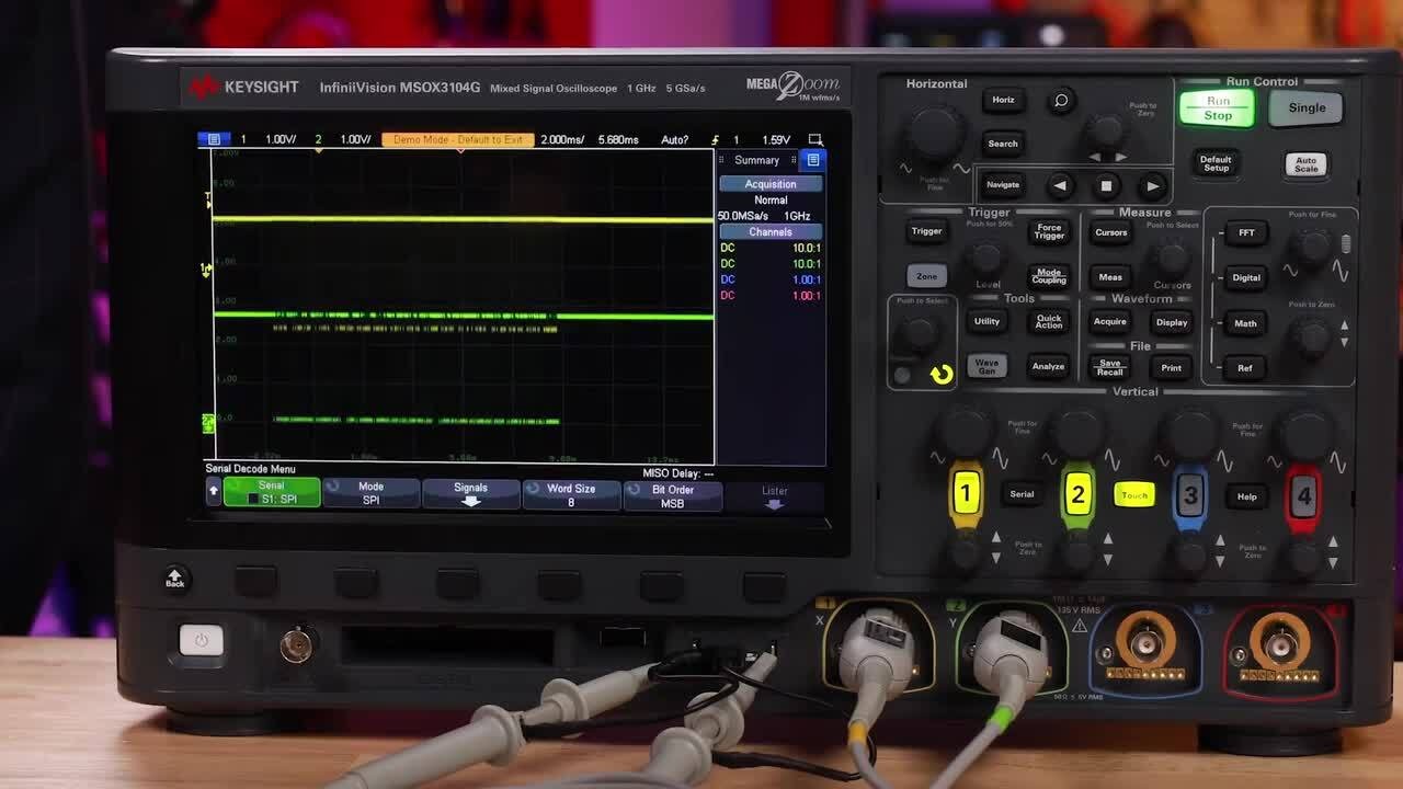 - Supports decoding and triggering for protocols such as: I²C, SPI, UART/RS232, CAN, LIN, I²S, and USB 2.0.